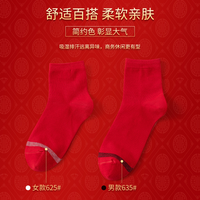 红色鸿运袜男女秋冬棉中筒袜防臭结婚喜庆本命年春夏红袜子定制