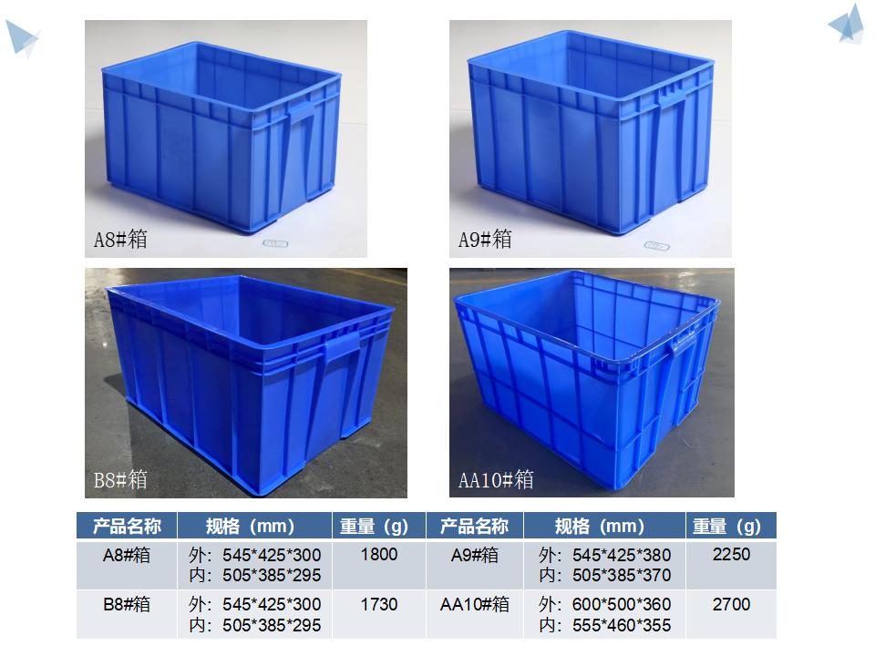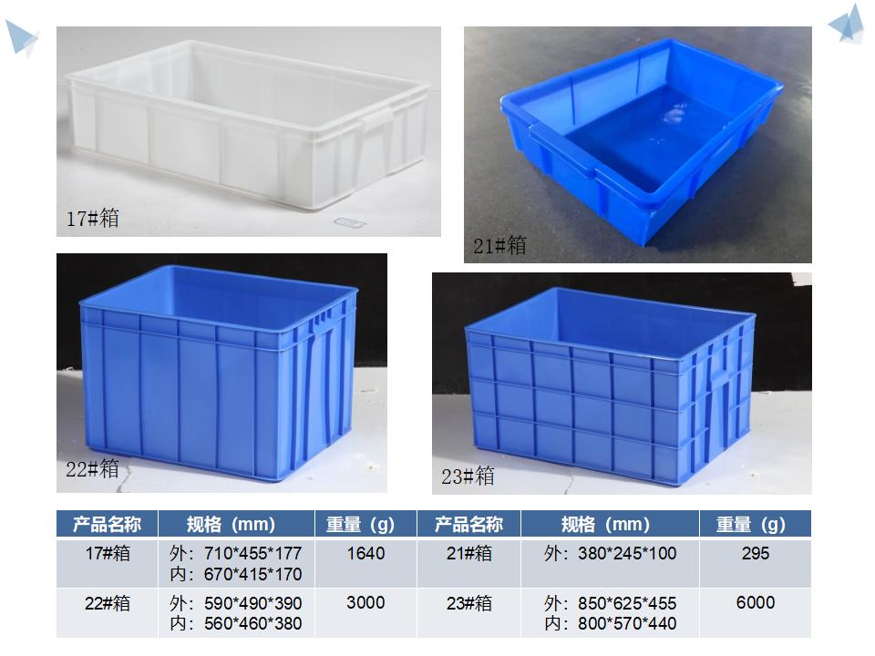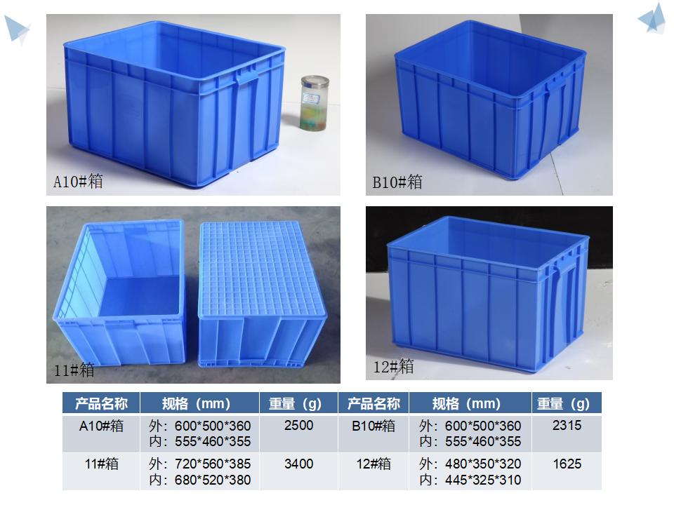 塑胶周转箱是用塑胶生产出来的运转箱、物流箱,塑胶周转箱属于包装和周转材料类型。塑胶周转箱多 系选用具有高冲击强度的HDPE(低压高密度聚乙烯)和PP (聚丙烯)为原料一次性注塑而成。有些塑胶周转箱还配套了箱盖(有的箱盖是单独配套使,一般都通用几款同类型的物流箱产品。有的是针对同一款箱设计的箱盖,都为和箱体链接或通过其它辅助配件和箱体连接为一体)。还有些塑胶周转箱设计成可折叠式样,在空箱的时候可以减少仓储体积同时也减少来回的物流费用。