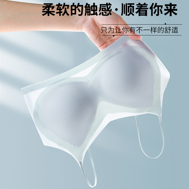 夏季超薄内衣女小胸聚拢防下垂冰丝无痕文胸大胸显小抹胸运动胸罩