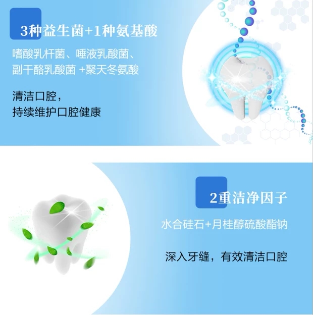 ● 特含氟化钠和抗菌素更能显著降低根部蛀牙发生率,能更加有效地抵抗导致蛀牙、牙齿变黄和口腔异味的细菌。坚固洁白牙齿。