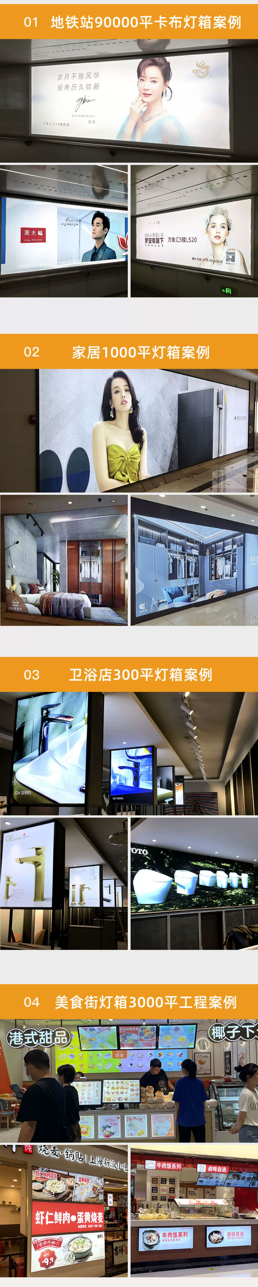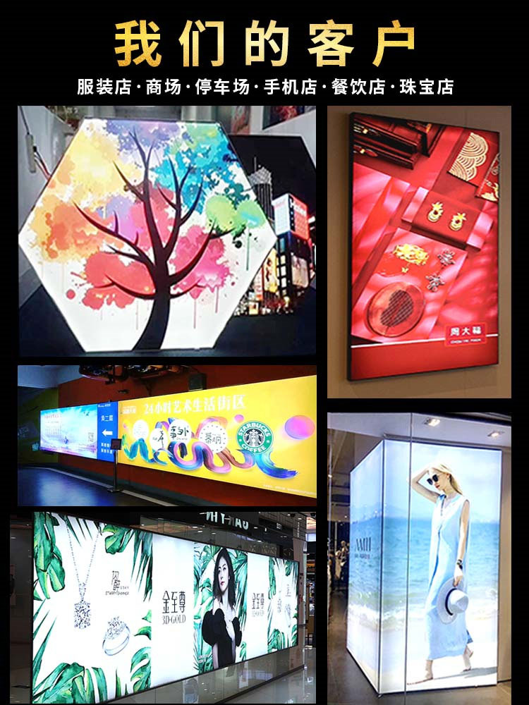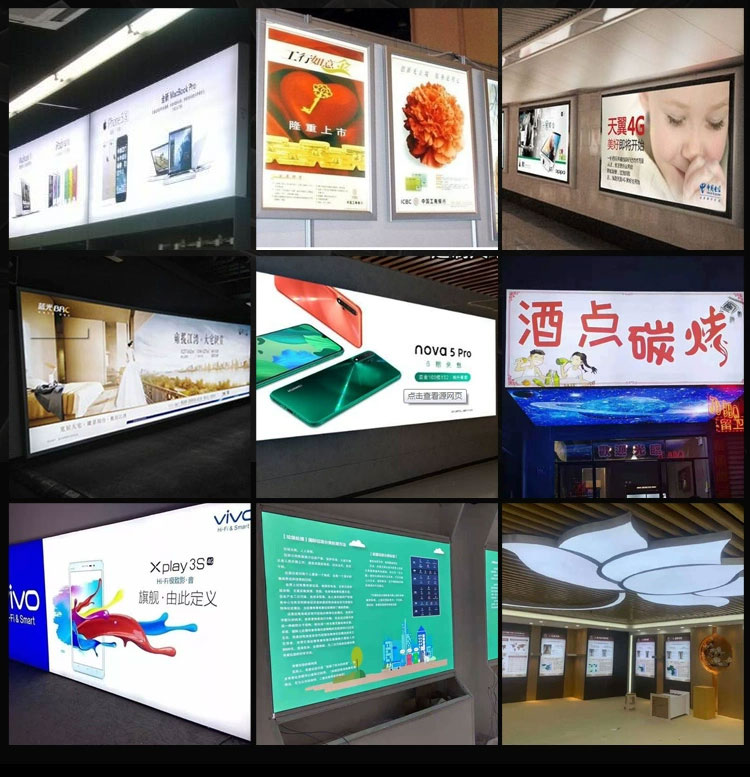 广告一般分室内广告和室外广告,室内广告主要包含室内宣传方面的产品,比如背景墙,形象墙,海报框,喷绘,标识牌,导向牌,标识导示系统,招牌,灯箱,展览,展示,主要分布在电梯内、商超内、展厅内、学校内、工厂内、公司内等,而室外广告范围就更广了,大体上来讲是在建筑物外表或街道,主要分布在地产、景区、工厂、公司、工业园区等等,主要包括有大型户外广告牌、精神堡垒、招牌灯箱、户外招牌、地产发光字、各类楼体字、楼体广告,亮化工程,LED显示屏等,都属室外广告。