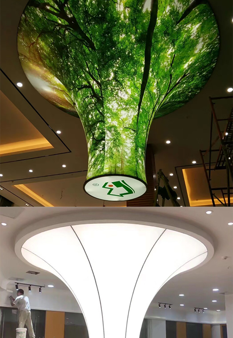 3、软膜灯箱的人性化款式多变,任意形状定制选择,样式多种,可直接安装在墙壁,木方,钢结构,石膏间墙和木间墙上,适合于各种建筑结构。